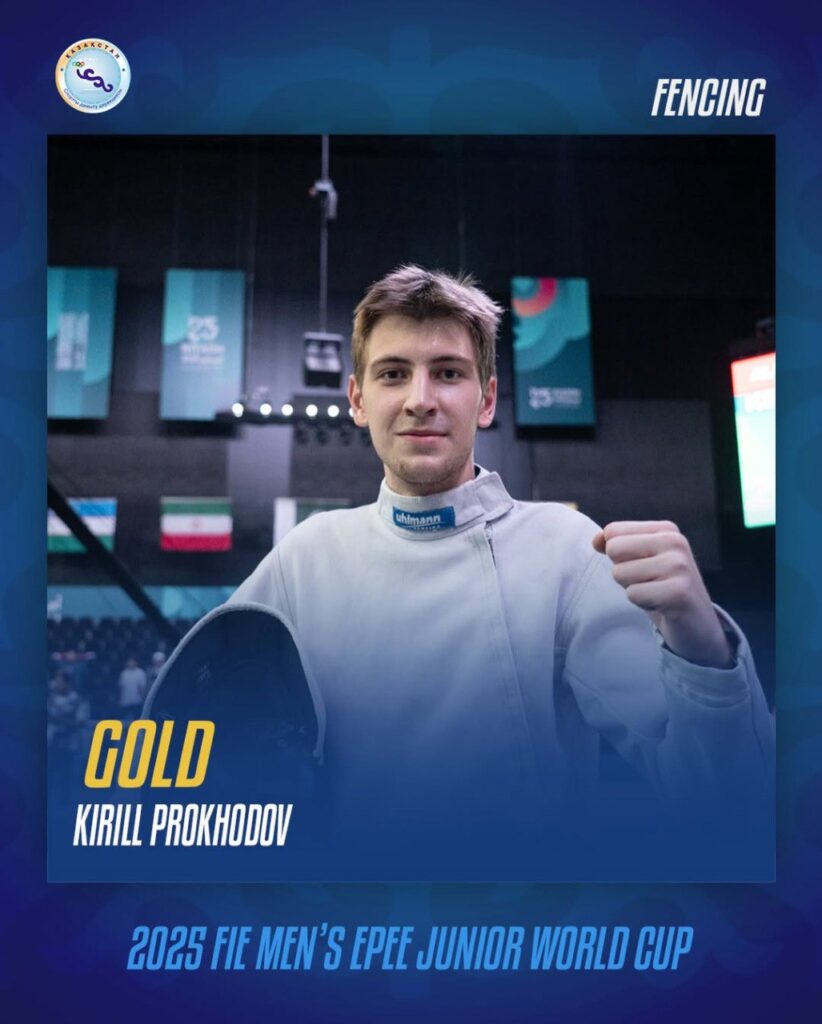 Казахстанский саблист Кирилл Проходов завоевал золотую медаль этапа Кубка мира среди юниоров в Ташкенте. В полуфинале он уверенно обыграл представителя Узбекистана Камронбека Исмоилова со счетом 15:6, а в финале не оставил шансов Чэнь Бин-цзюню (Китайский Тайбэй) — 15:7.